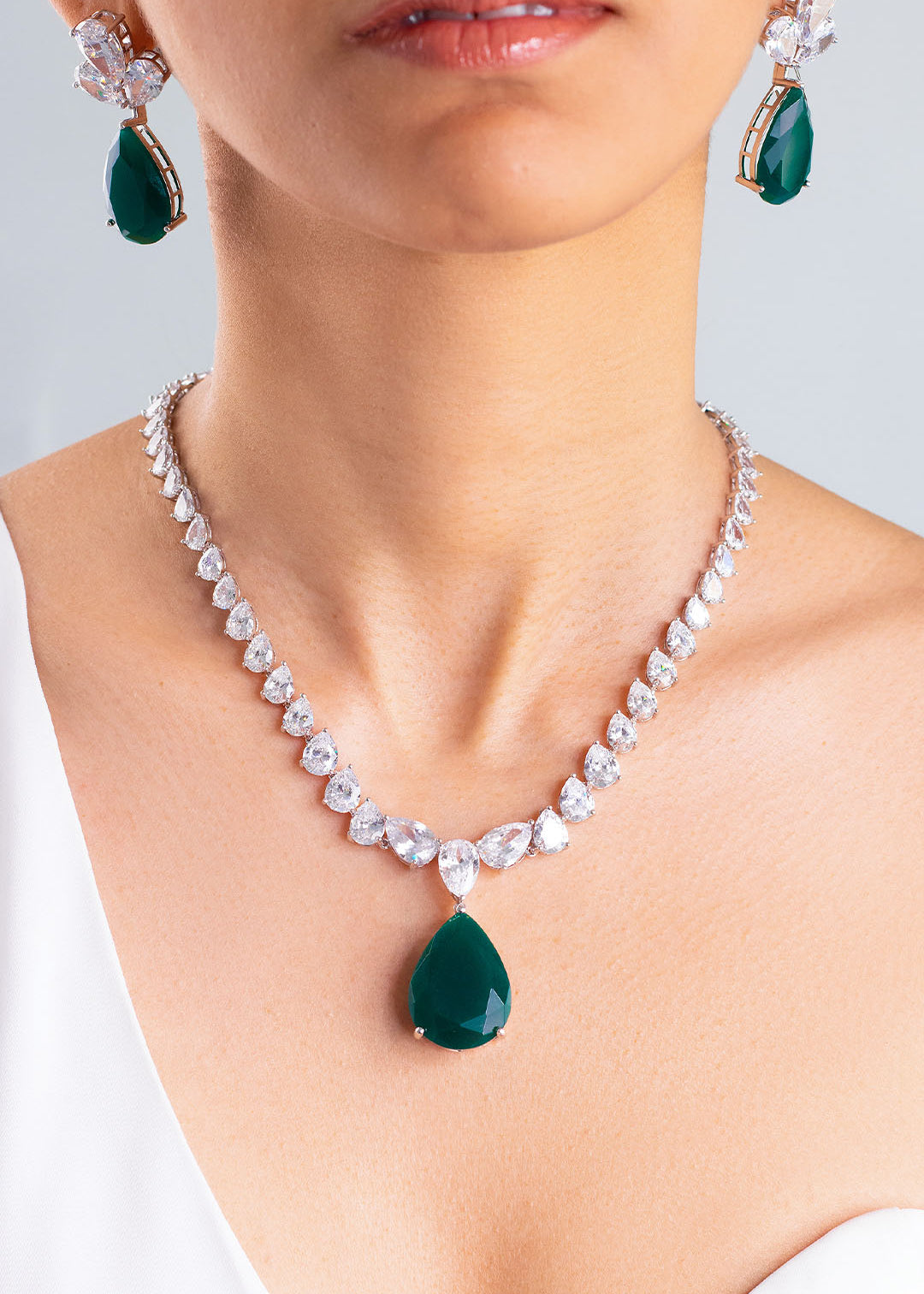 طقم قلادة أندي × سولارا باللون الأخضر الزمردي