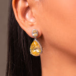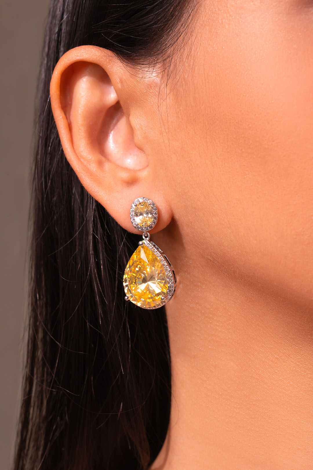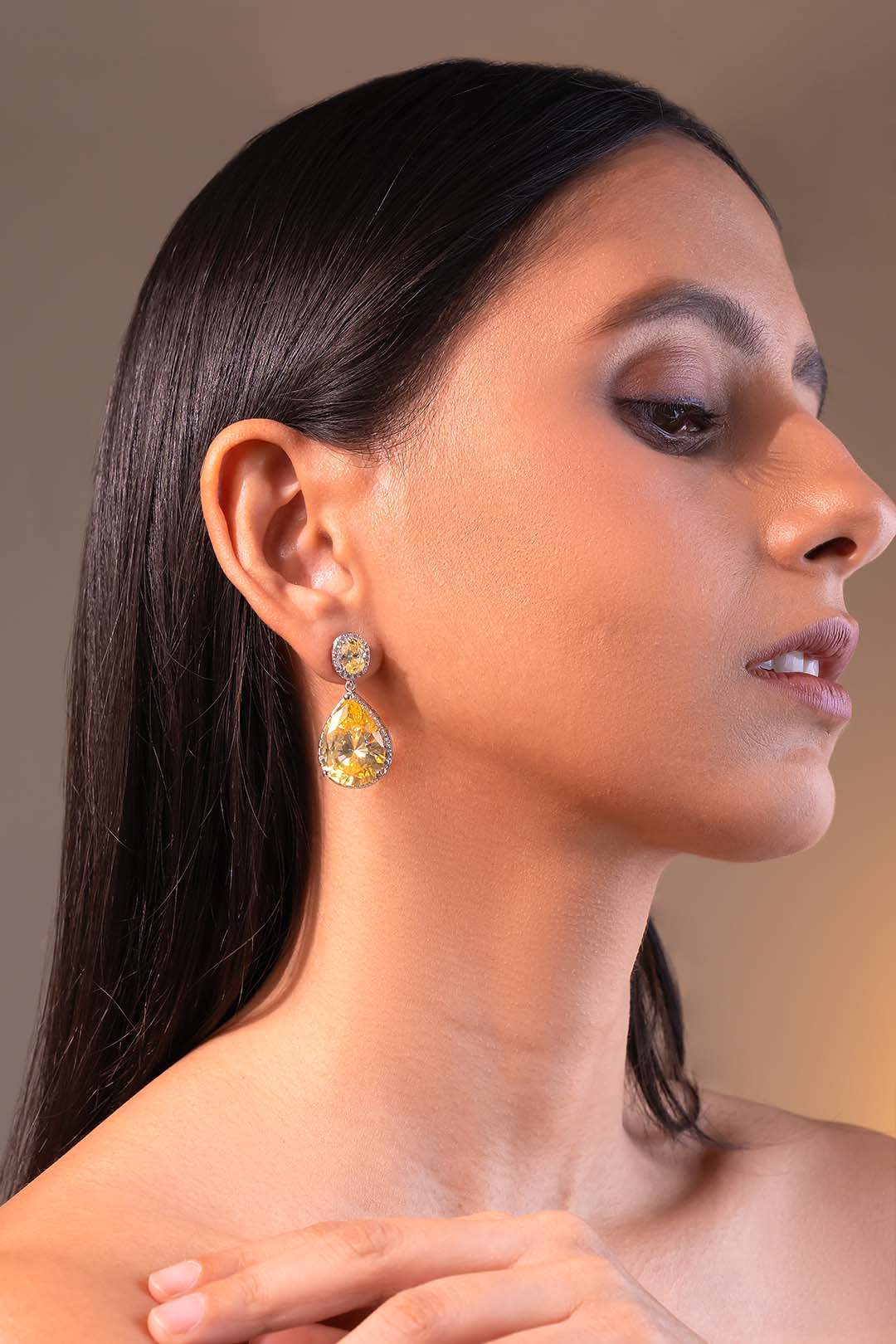 تتميز هذه الأقراط بتصميم أنيق على شكل دمعة محاط بتفاصيل كريستالية متلألئة، وهي تنضح بسحر كلاسيكي مع لمسة فاخرة من الألوان.
