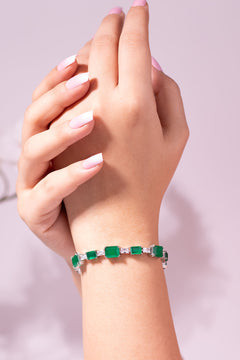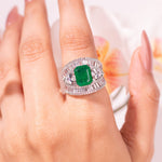 يتميز خاتم زافيرا بأناقته الجريئة. يتألق حجر الزمرد الأخضر اللافت للنظر في وسطه، محاطاً بتفاصيل أنيقة مقطوعة على شكل باغيت تضفي عليه بنية متماسكة وبريقاً ولمسة عصرية مميزة. يمنحه تصميمه متعدد الطبقات إحساساً بالقوة والجرأة مع الحفاظ على رقيه.