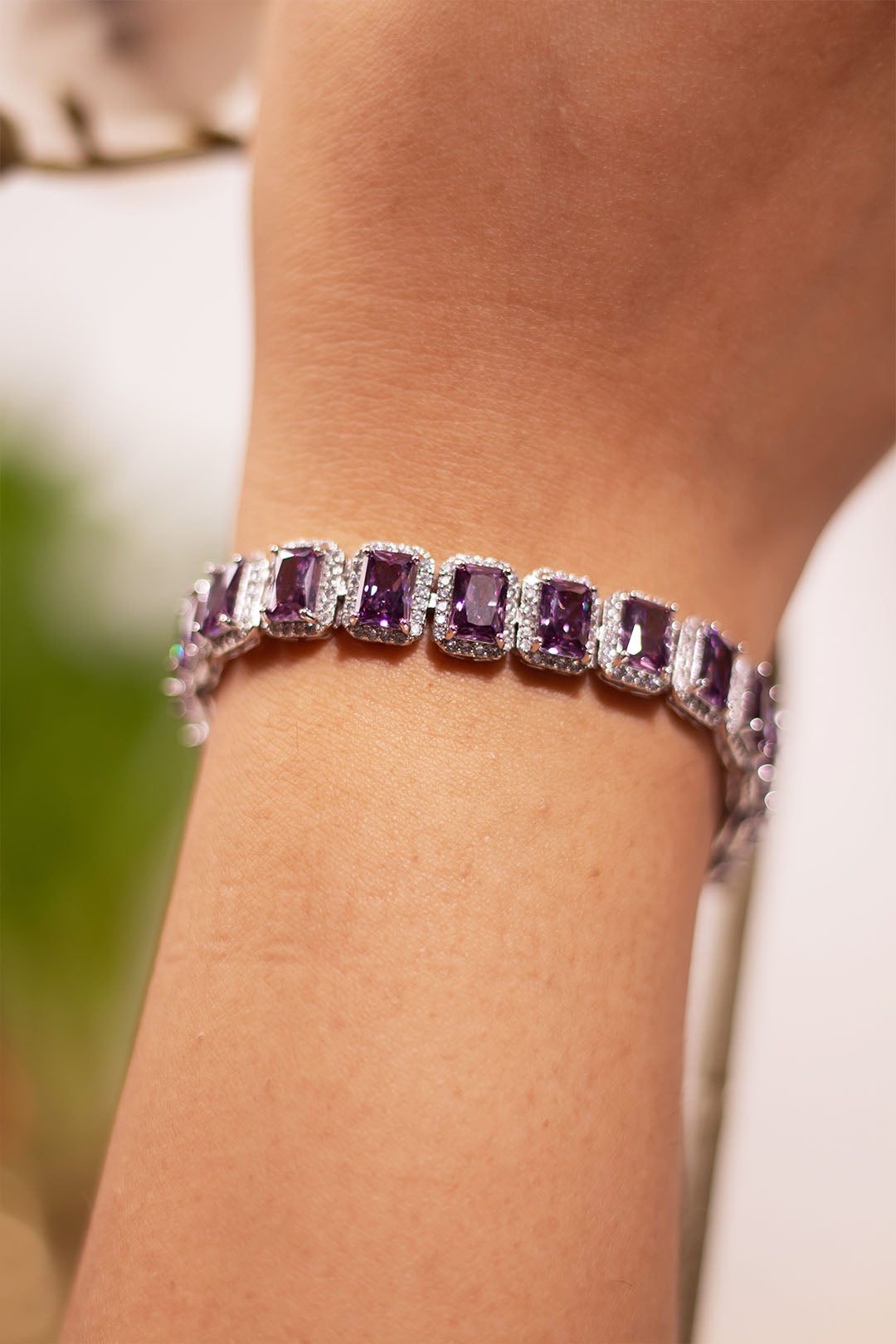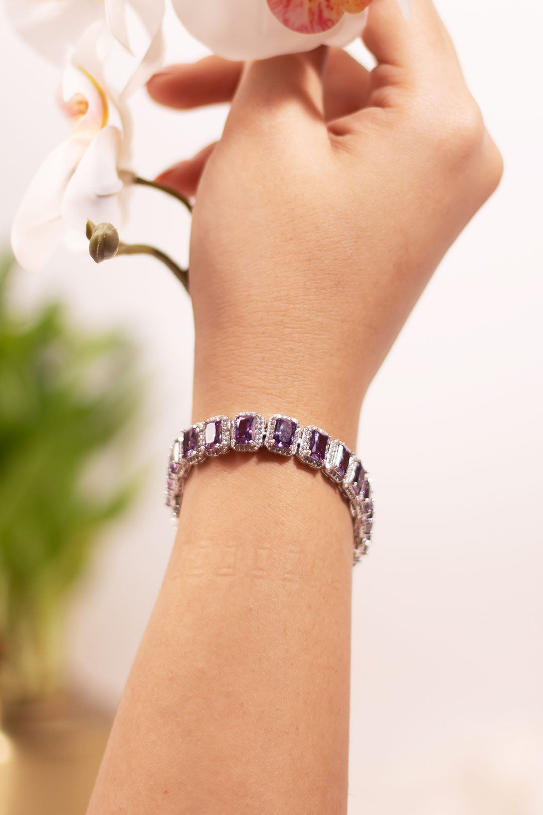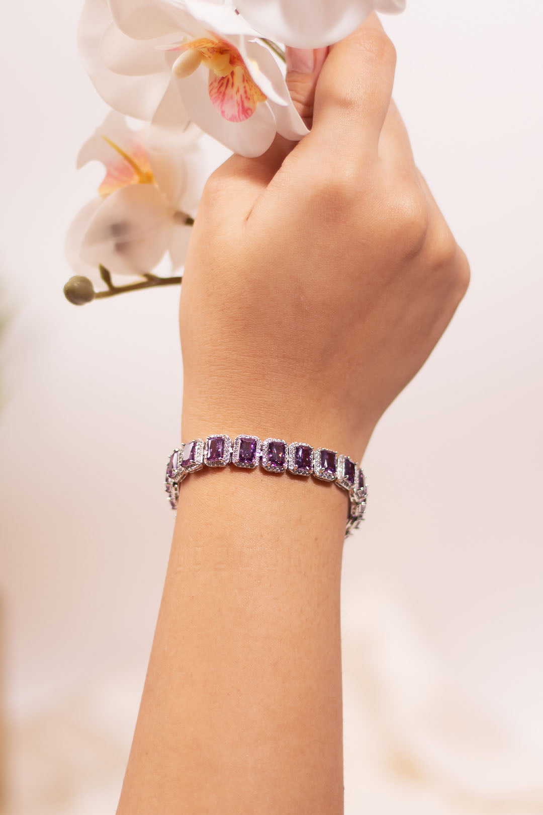 The name Amara, meaning "eternal" and "unfading," perfectly captures the enduring allure of this bracelet. Designed for those who appreciate understated luxury, this exquisite piece features a seamless row of radiant ruby red gemstones, each set within a halo of dazzling pavé diamonds.