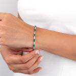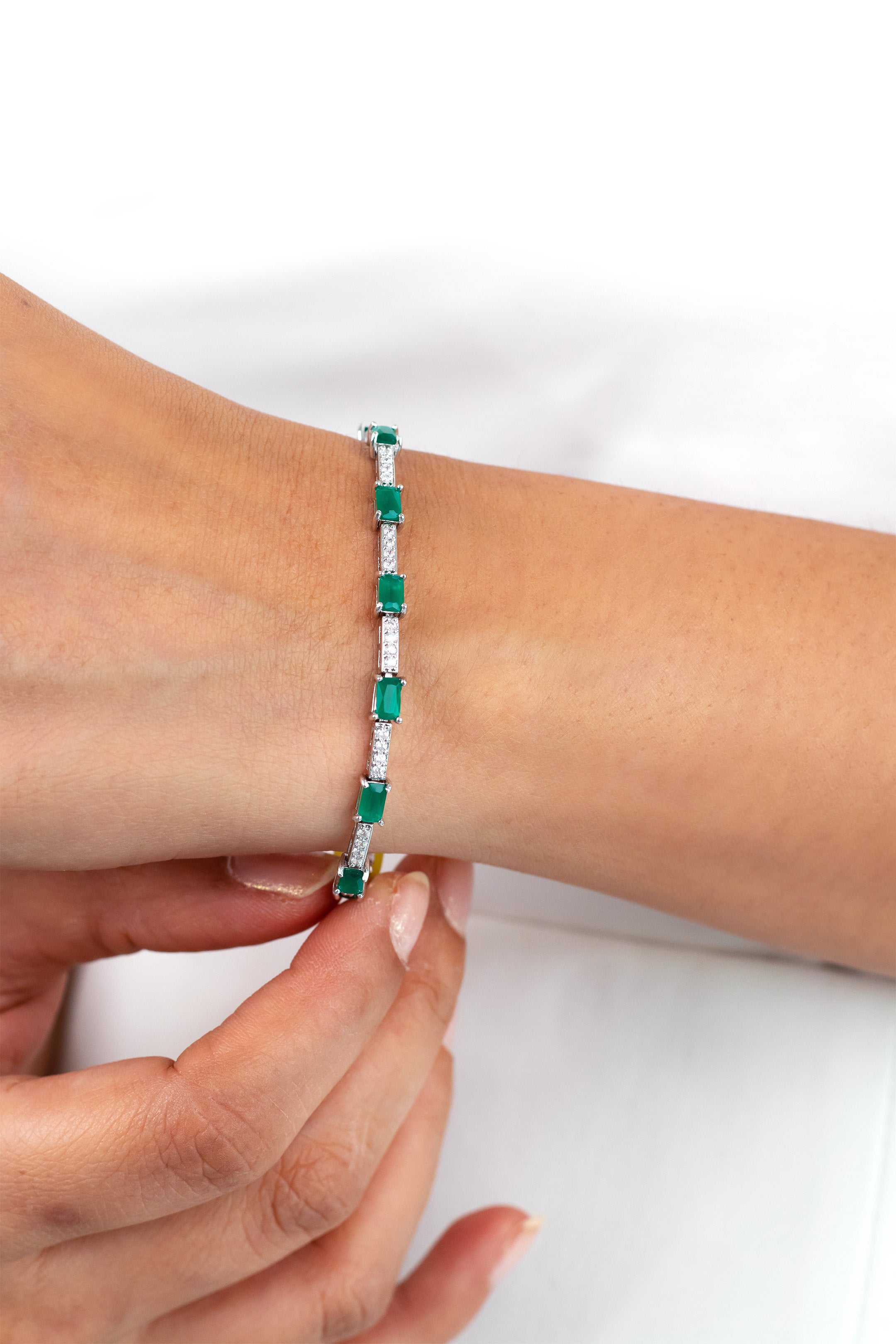 A sleek bracelet lined with striking emerald-green stones, highlighted by sparkling pavé accents.