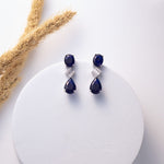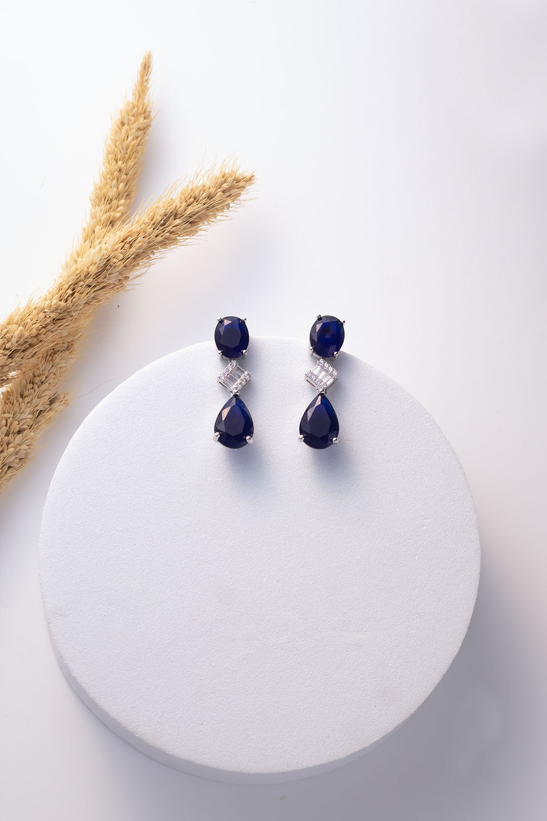 Showcasing radiant teardrop and oval-cut AAA Cubic Zirconia stones, accentuated by a baguette-cut stones for added brilliance.