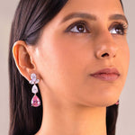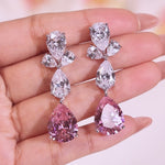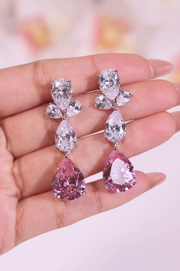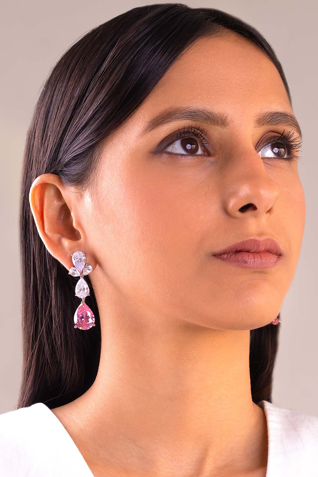 The icy white teardrop stones flow effortlessly into a bright pink crystal, creating a graceful two-tone effect that instantly brightens your look.