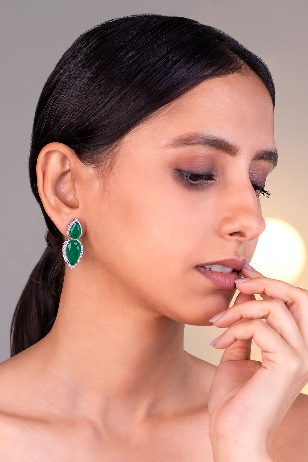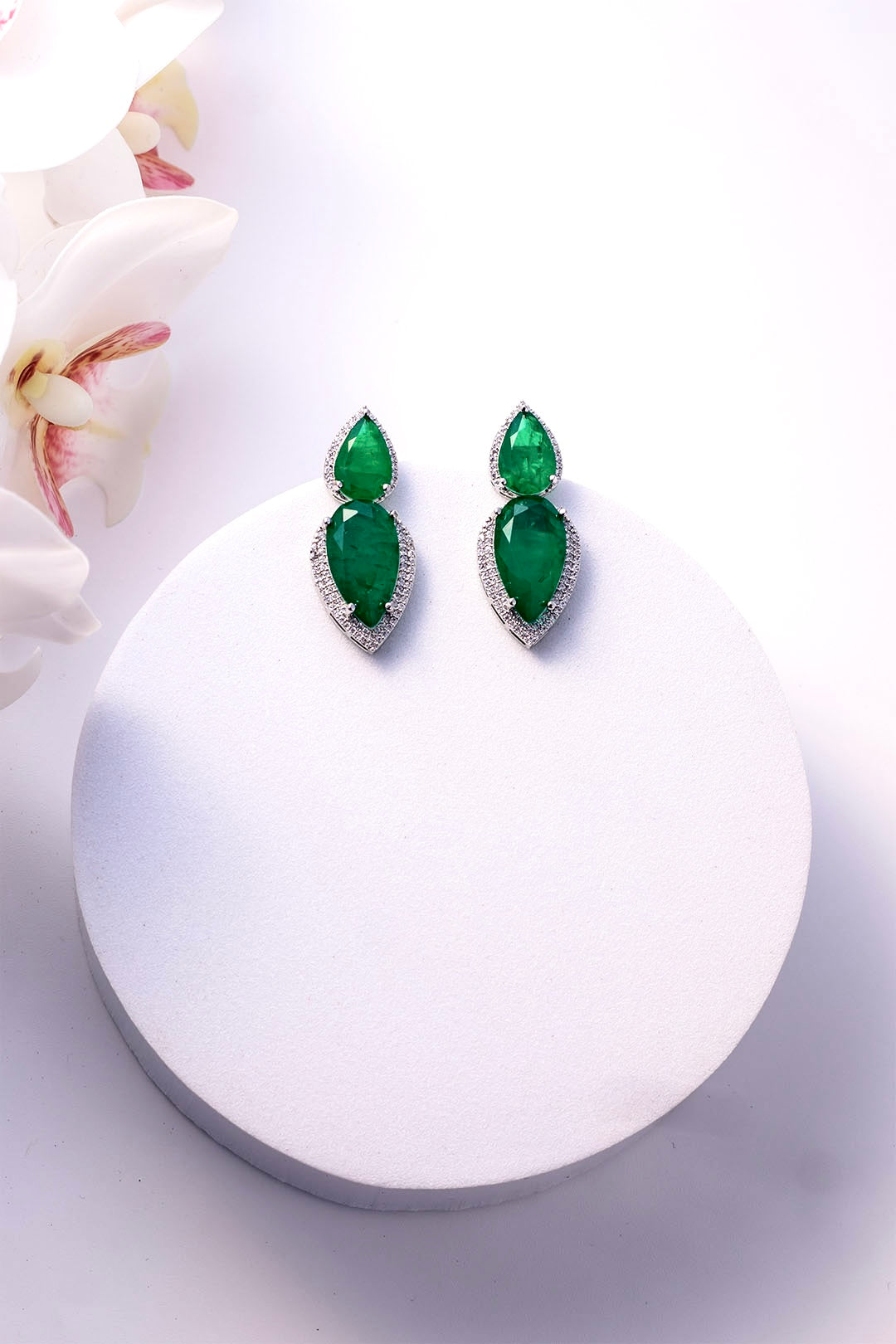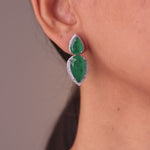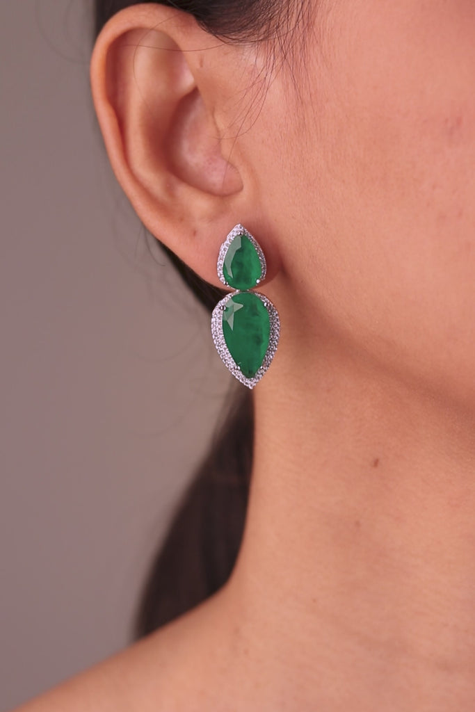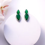 These emerald-toned earrings exude effortless sophistication. The dual gemstone silhouette, outlined with glimmering pavé crystals, makes them a standout accessory for festive soirées or evening affairs.