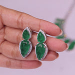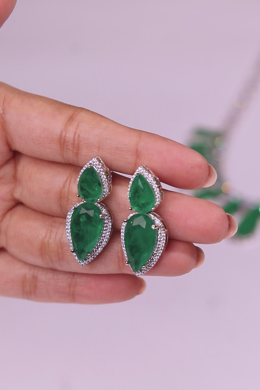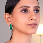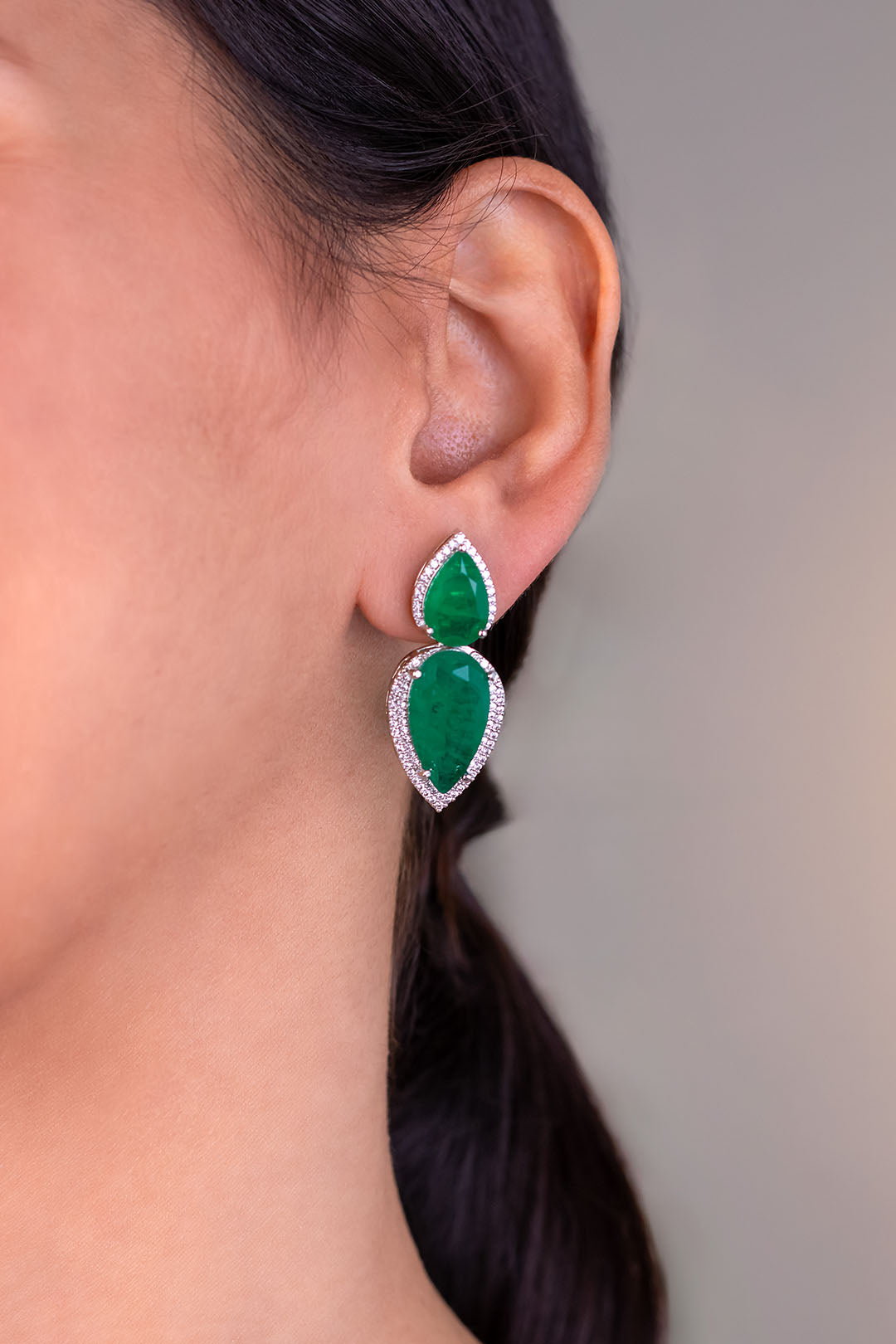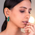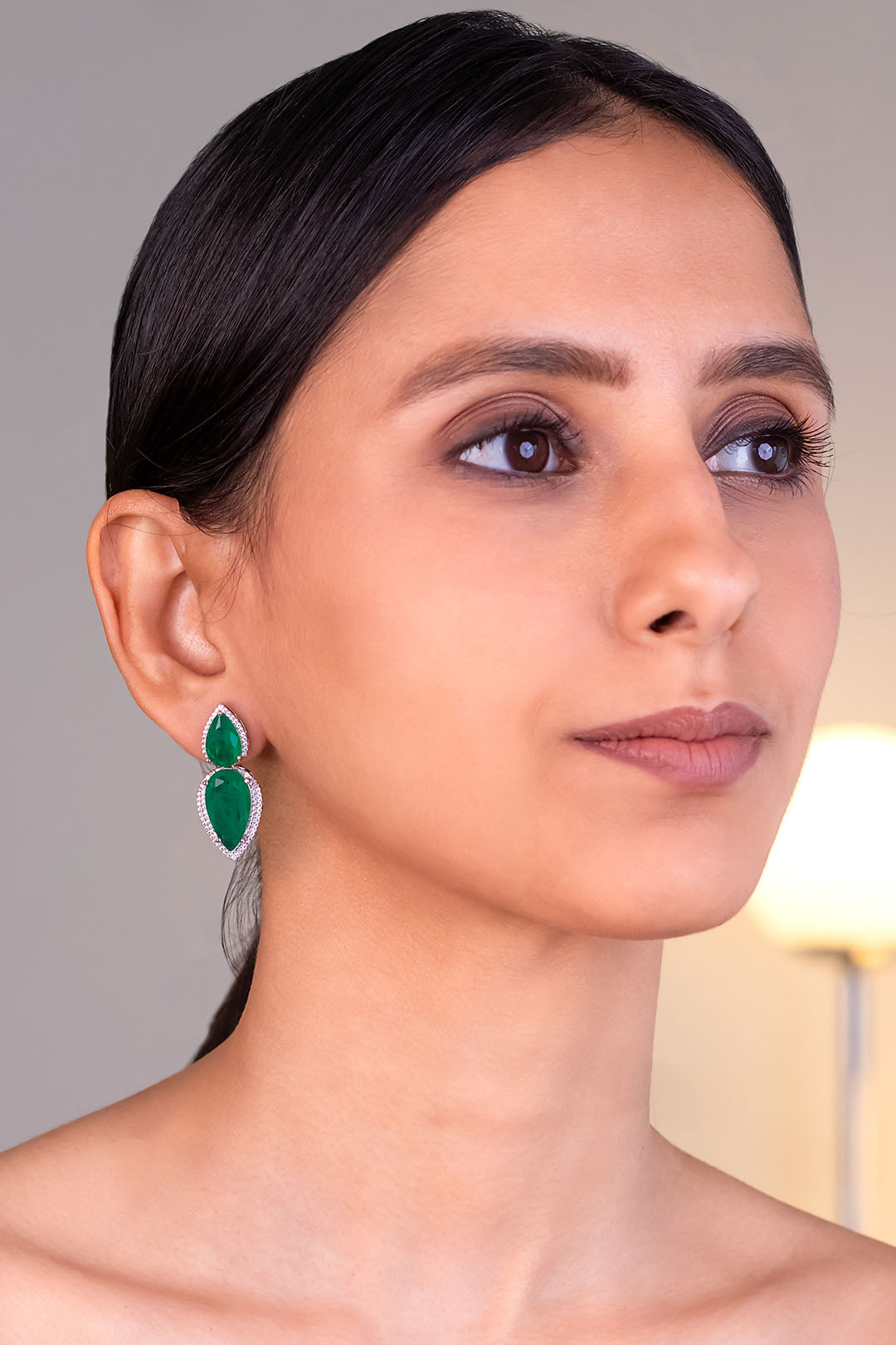 These emerald-toned earrings exude effortless sophistication. The dual gemstone silhouette, outlined with glimmering pavé crystals, makes them a standout accessory for festive soirées or evening affairs.