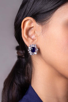 A showstopper in every sense — this adjustable ring features a deep blue-hued AAA Cubic Zirconia center stone, encircled by a halo of shimmering teardrop-cut CZ crystals.