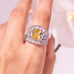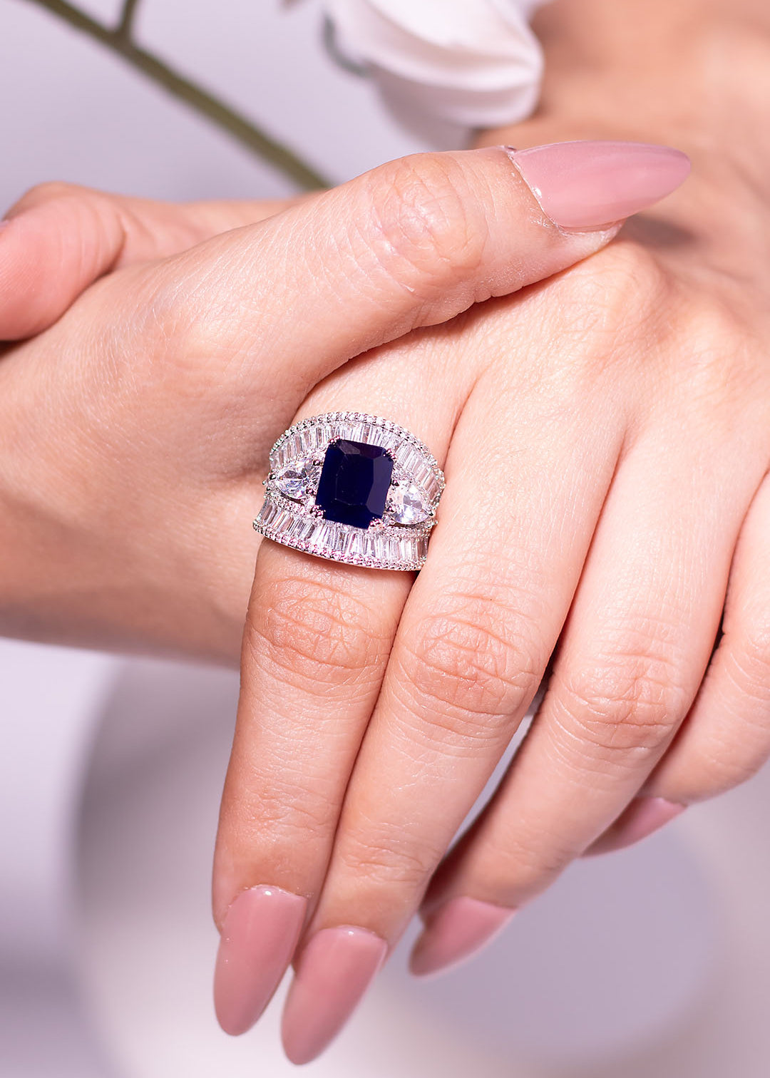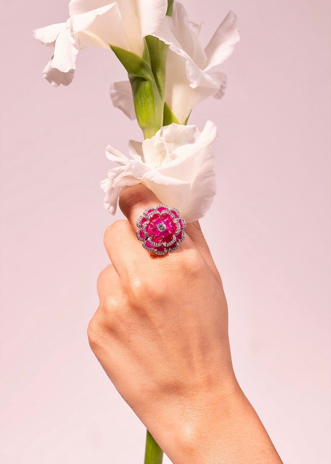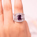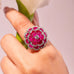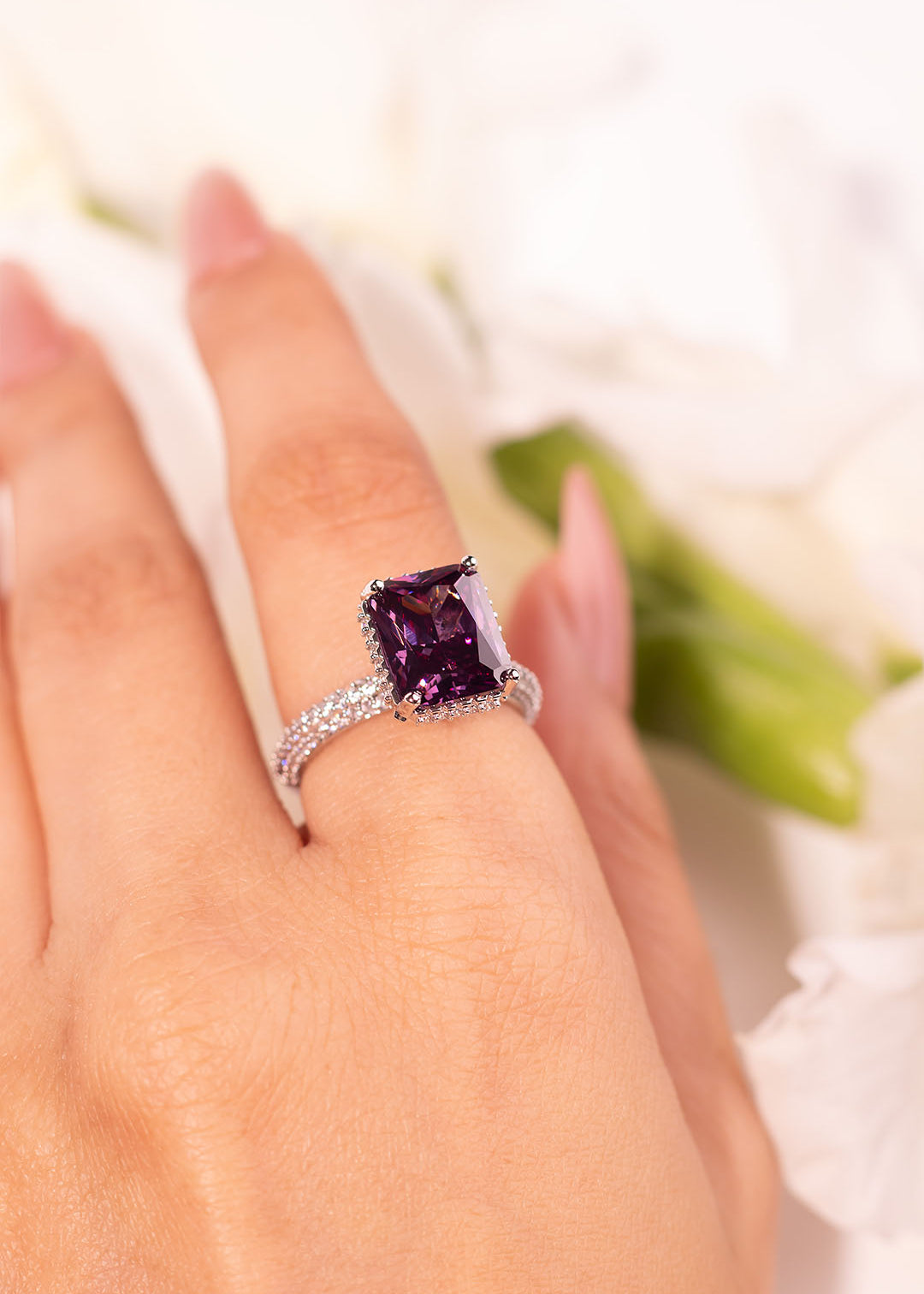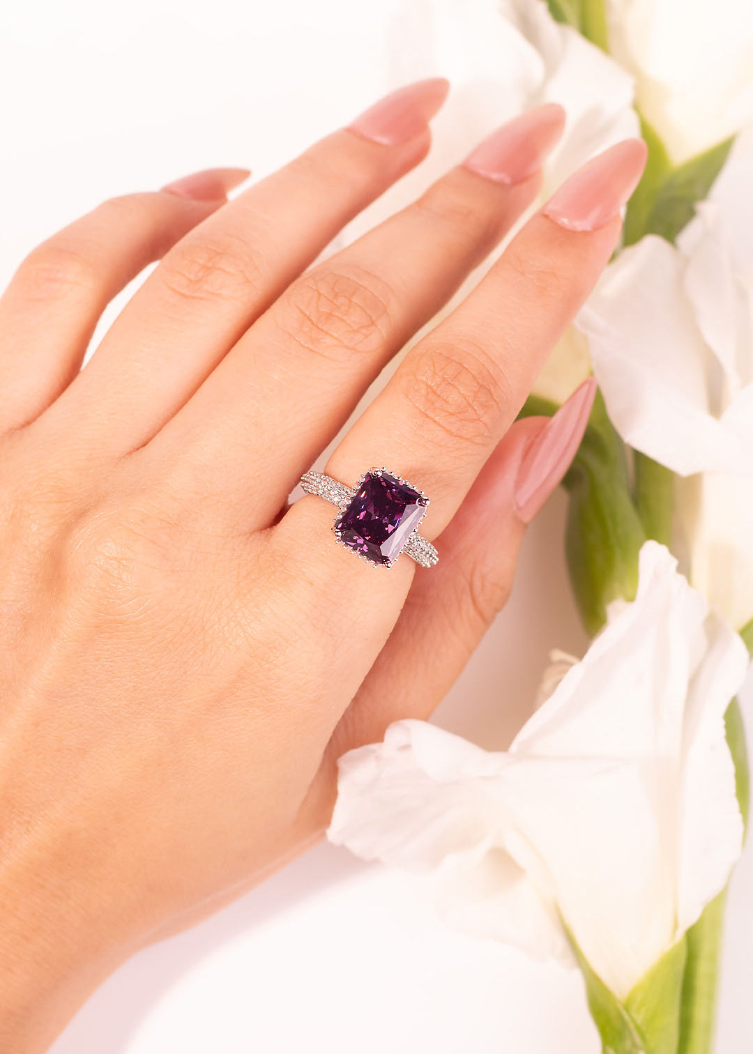 A captivating cushion-cut crystal set in a shimmering pavé band, this adjustable ring exudes elegance and romance. The soft blush hue radiates a timeless charm, making it a perfect statement of love and grace.