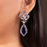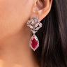 A couture-inspired drop earring featuring intricate crystal detailing and a ruby red centre stone in an elongated silhouette. Elegant yet impactful, this piece is designed for weddings, cocktail evenings, and festive occasions where statement jewellery takes the lead.