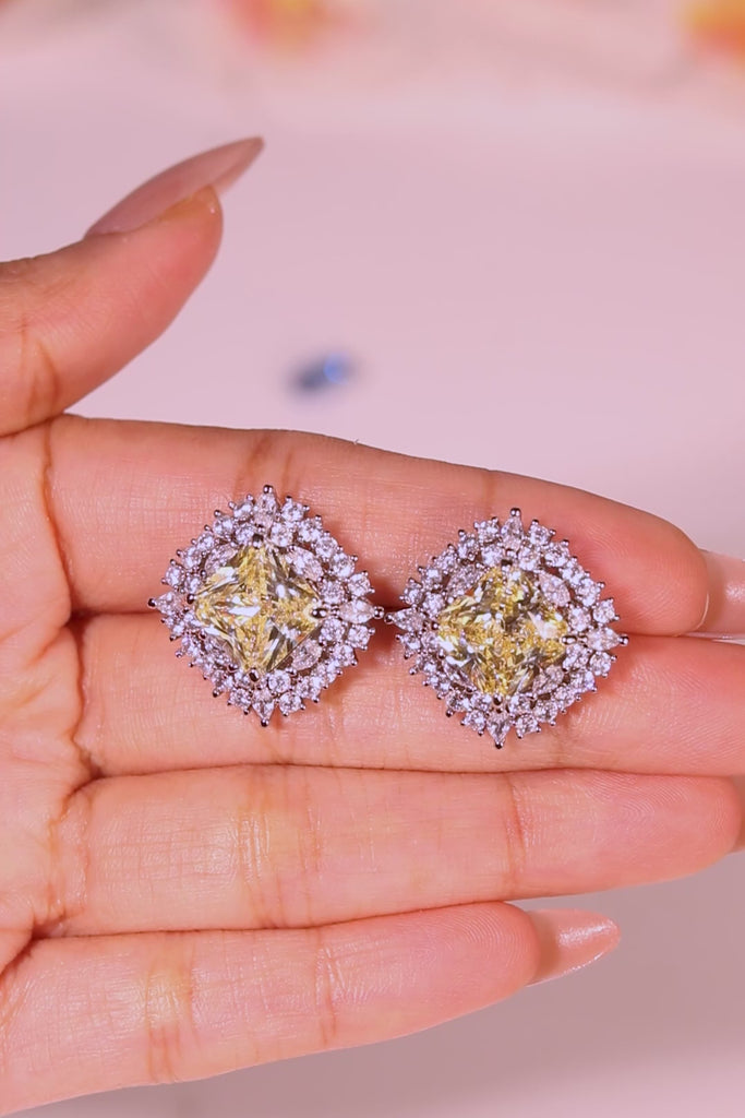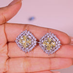 A refined statement stud featuring a soft yellow centre stone framed by a radiant crystal halo. Designed to balance elegance with impact, this piece adds a polished sparkle to festive looks, cocktail outfits, and evening wear.