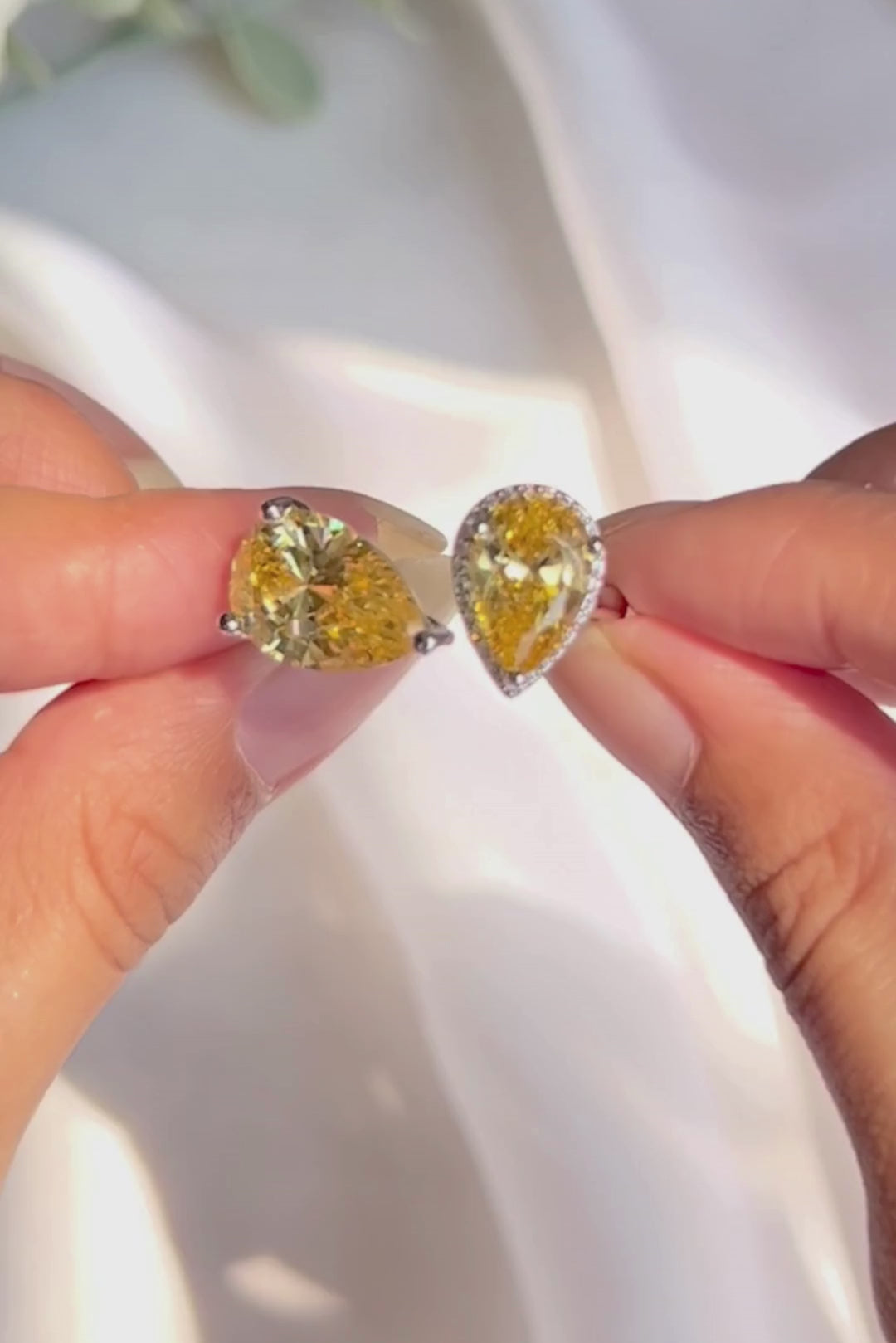 This ring combines timeless elegance with modern versatility. Featuring two captivating pear-shaped colored 5A CZ stones, delicately accented with pave details, this design exudes sophistication.