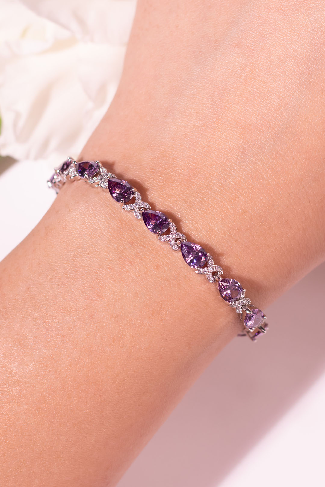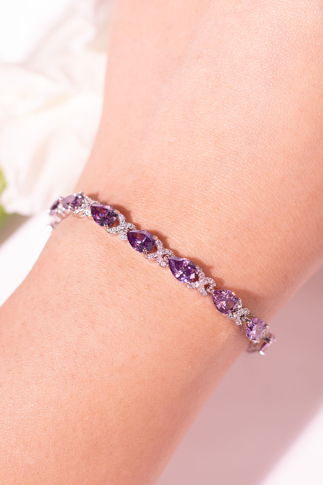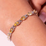 The Elira Bracelet is designed for effortless elegance. Featuring softly faceted pear-cut stones linked with delicate pavé detailing, it wraps the wrist in a fluid, feminine sparkle that feels refined yet modern.