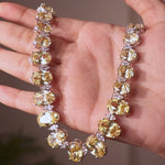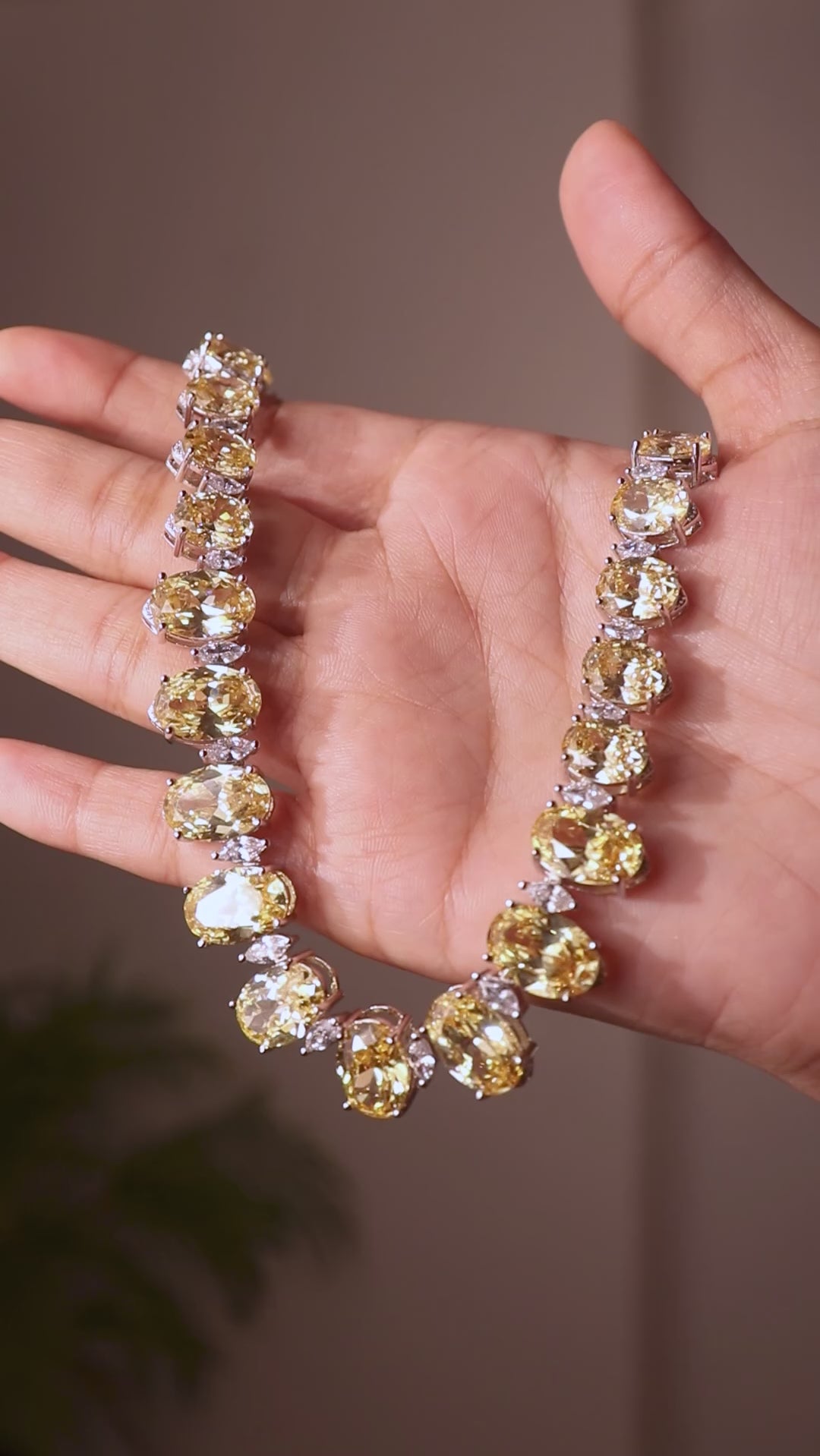 Oval-cut sapphire yellow crystals framed by sparkling white accents, creating a luminous play of color and fire.